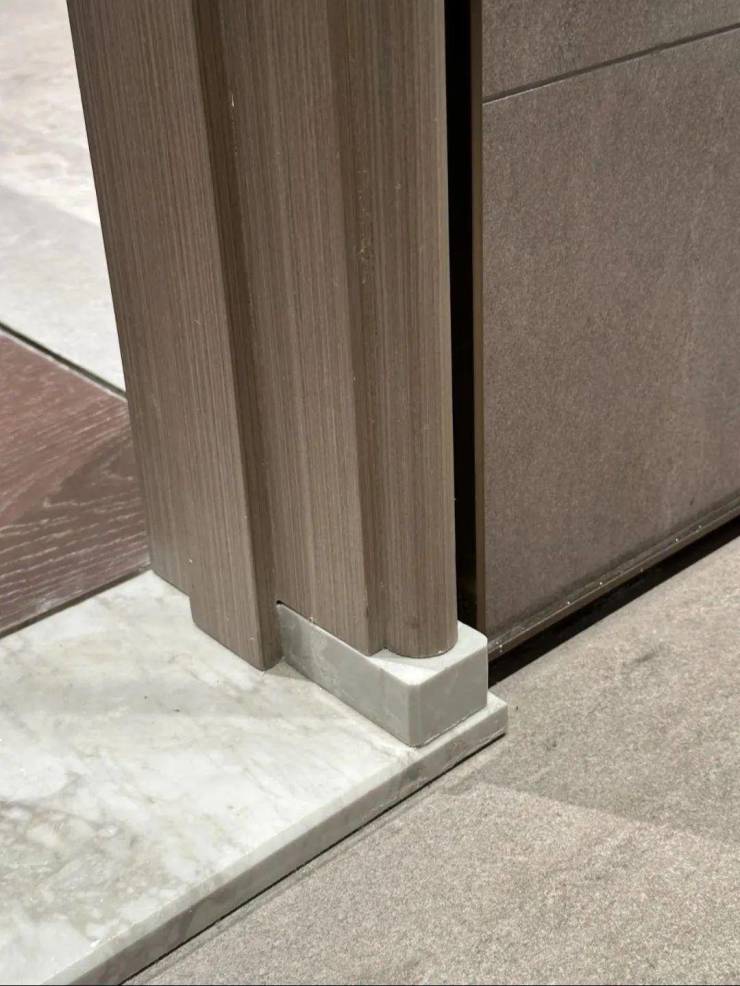 你们可以看下缦云上海是如何处理卫生间木门的防潮的——卫生间一侧用大理石做踢脚线,这是真正细致入微的巧思!
