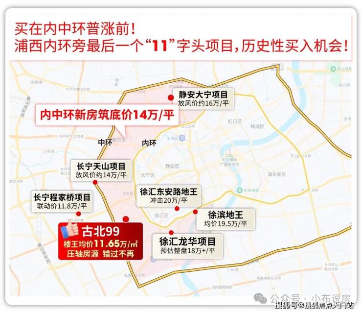 值得一提,相比紧挨中环的长宁天山项目、贴着外环的程家桥项目,古北99距离内环步行仅约1.4公里,却有着更亲民的价格。