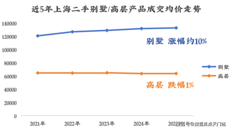 于高净值人群而言,除了居住属性,别墅本质上是对土地资源的占有。也因此,它比普通高层更加保值,近5年成交的价格涨幅一路领跑。