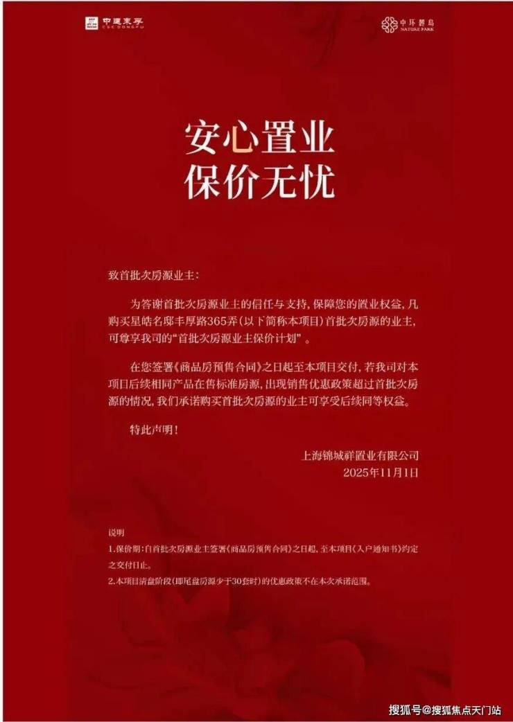 上海第二个作出“保价”承诺的项目,11月1日,中环麓岛项目也发布了公告:凡购买首批次房源的业主,可享“首批次房源业主保价计划”: