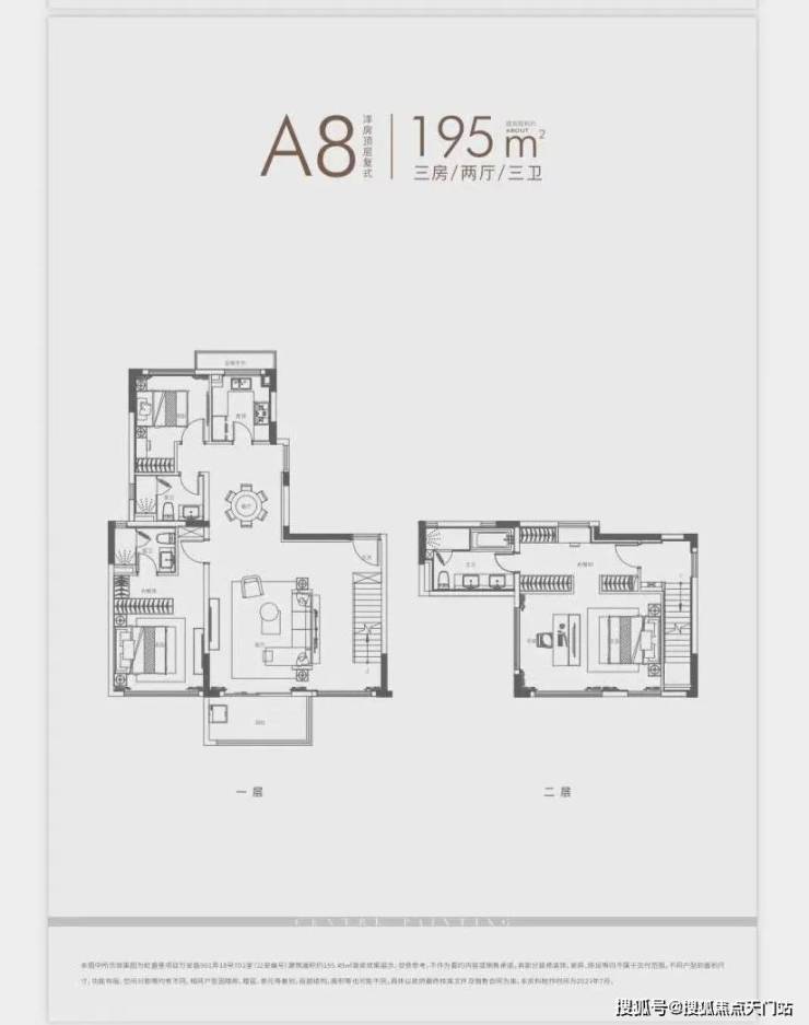 ①、建面约120㎡3房: