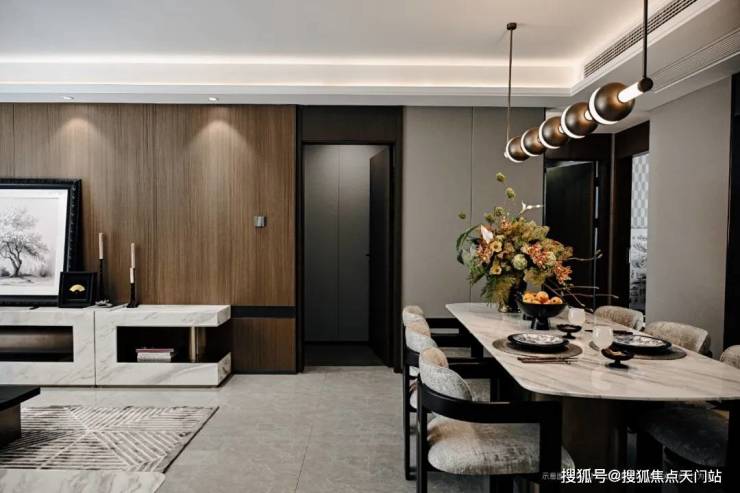餐客厅阳台一线贯通,动线流畅,弧形阳台拓展景观视野。