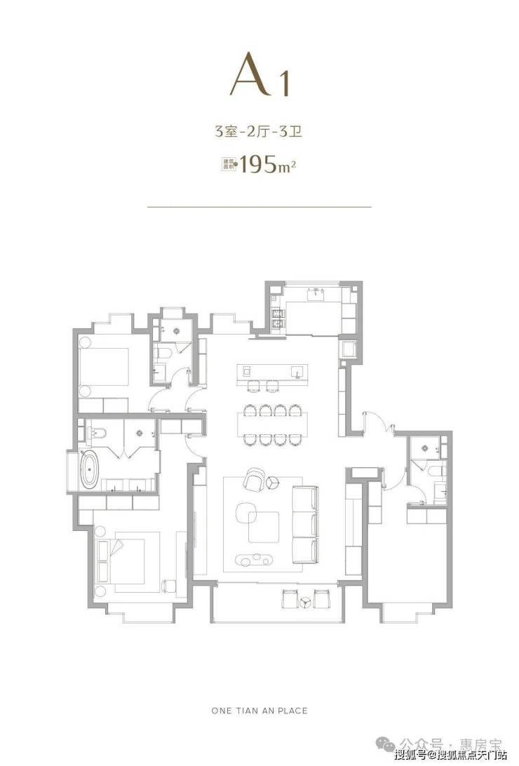 而另一个大户型175㎡,也几乎是195㎡的缩小版,同样三套房的设计保证了超强的舒适度。