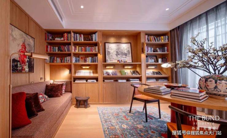 可坐可卧的软塌,让书房升级为舒适安逸的精神领地。一杯咖啡,一本好书,一张黑胶,消磨一段悠闲的午后时光。