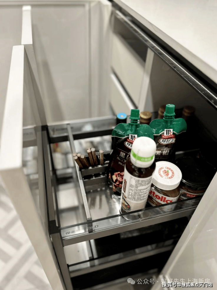 就连冰箱也是交付的。在百平米3房的户型中安排了东芝的内嵌无霜冰箱、大户型选用顶豪的嘉格纳冰箱。