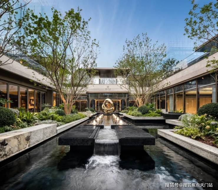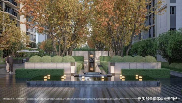 风雨连廊两侧辅以独具韵味的自然怡景,将门头系统、下沉式会所、中心水景都一路有机地串联到一起,为业主打造更加立体的礼序归家的仪式感。