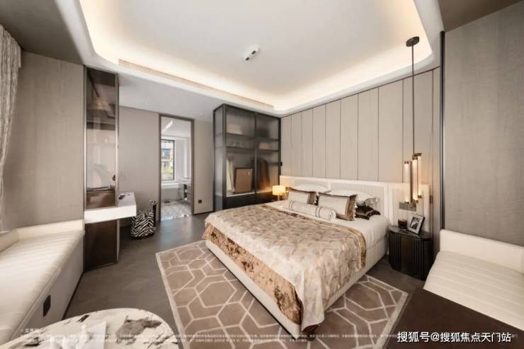 主卧横向大开间,纵向长进深,足以划分出步入式衣帽间,还贴心地为女主人在主卫旁预留了梳妆台位,方便化妆护肤。