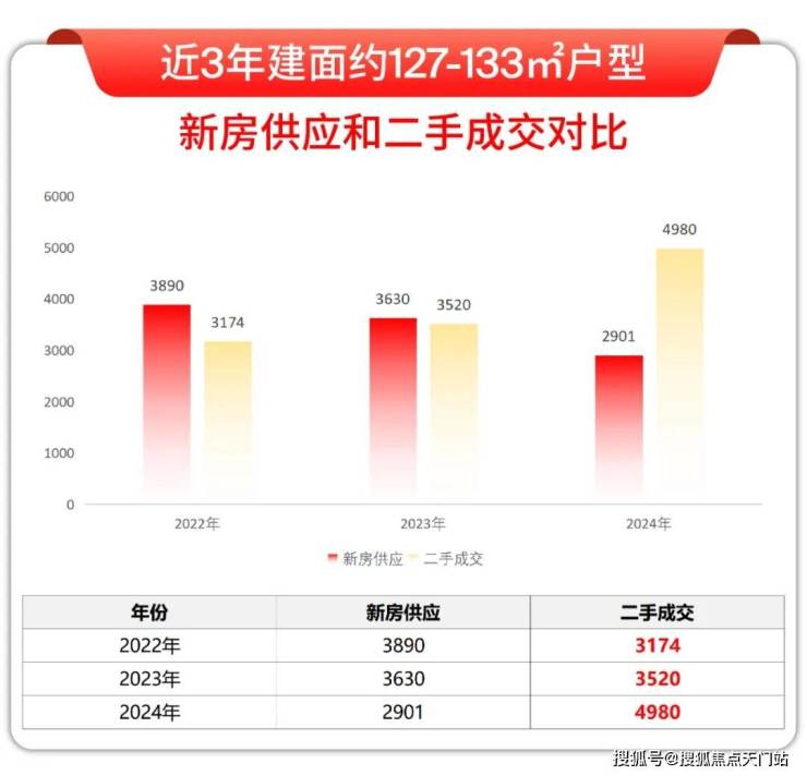 我查阅了130㎡左右(127-133㎡)近3年的新房供应和二手成交套数,对比之后发现: