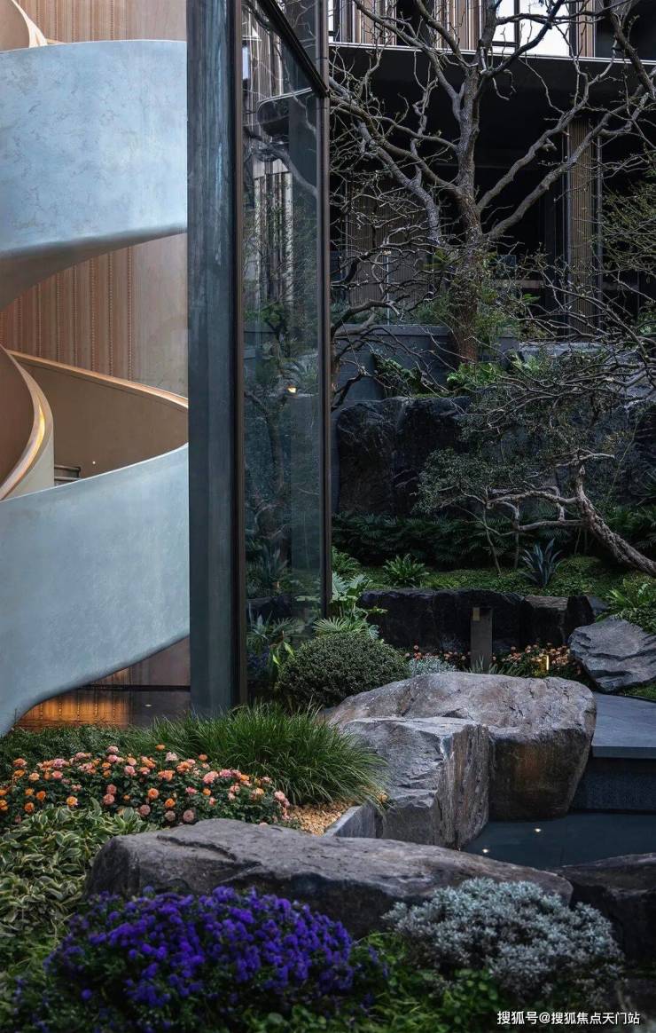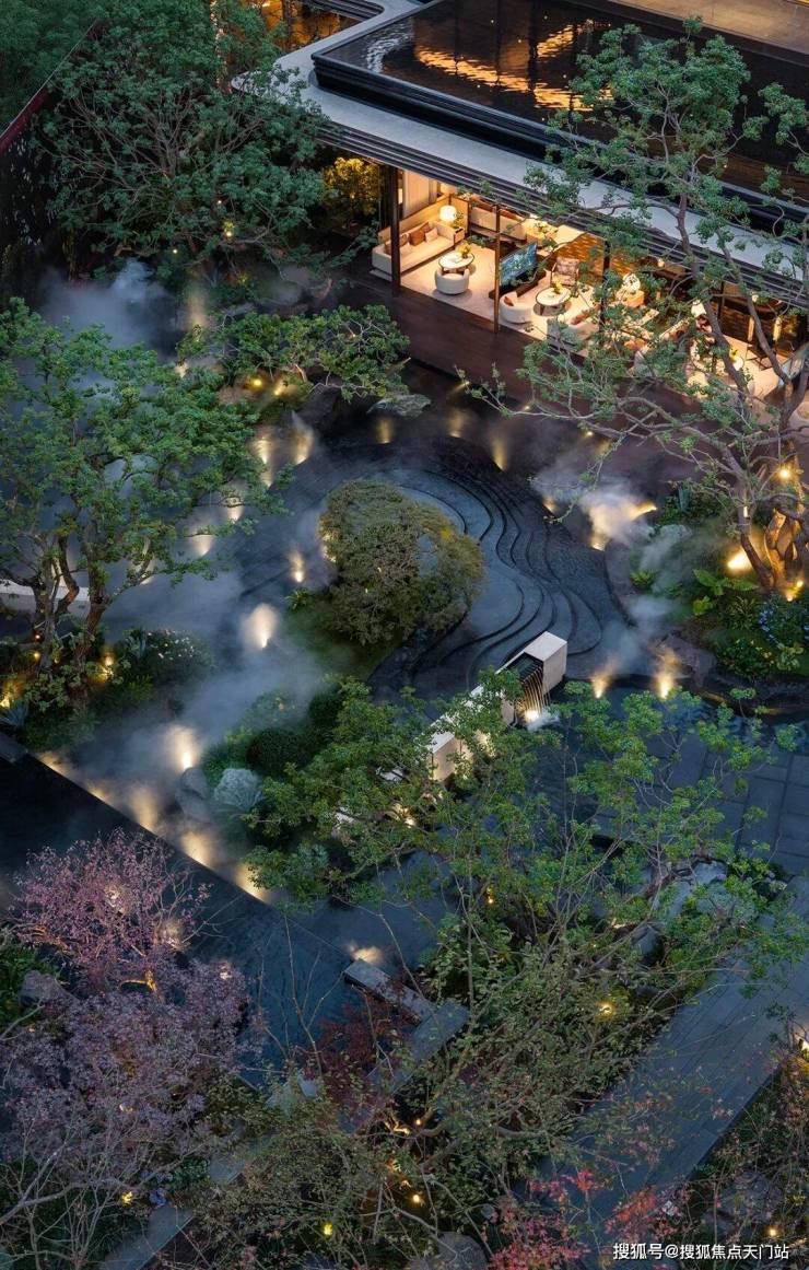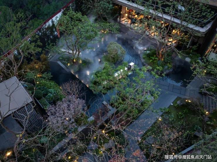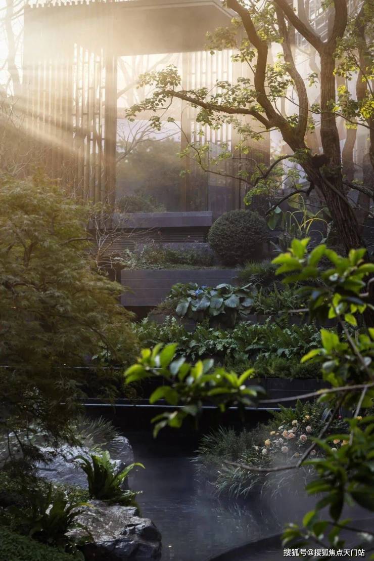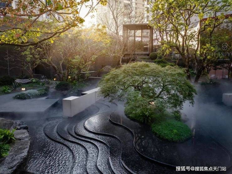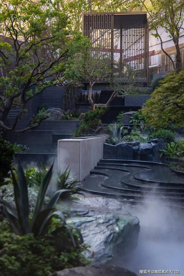 凭借约14米天然高差,以突破性的立体营造手法,将山川、溪谷、林泉的意象层层织就。近2000㎡实景下沉庭院,在都市中央展开一幅可游、可赏、可居的立体山水长卷,三境九韵至此呈现,东方美学步入全新表达维度。