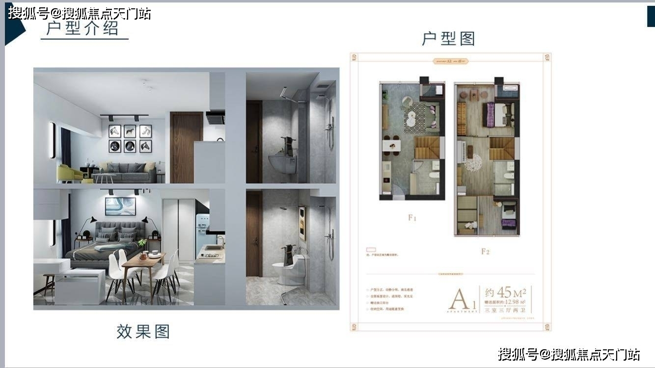 【楼盘信息】:总高度约200米,总高地上40层,1-4层商铺,5-40层酒店式公寓,层高4.5米,15梯47户,另有6个扶梯