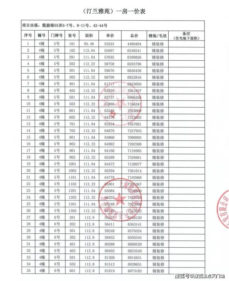 附一期全套一房一价表: