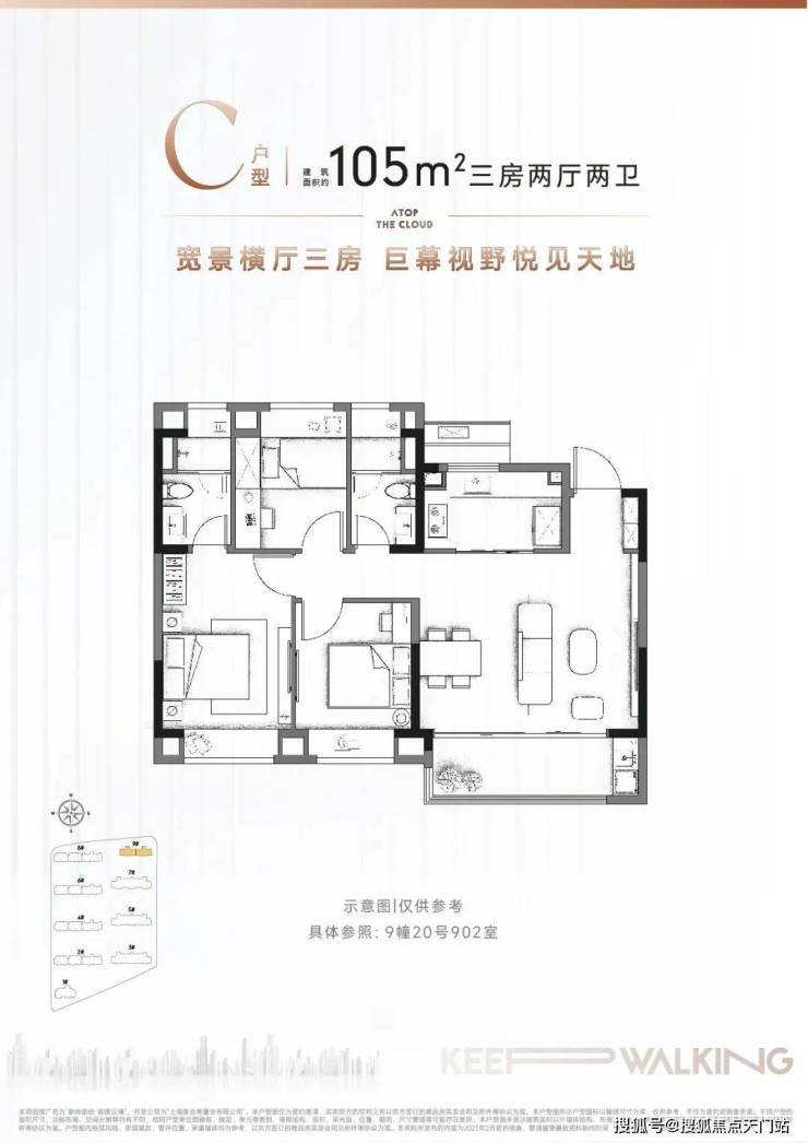 建面约105㎡3房2厅2卫