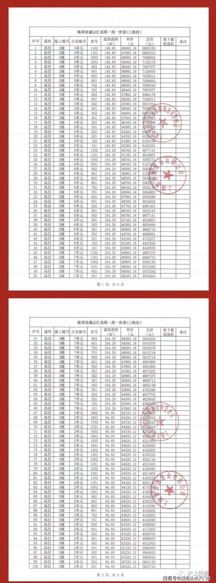 附一房一价表: