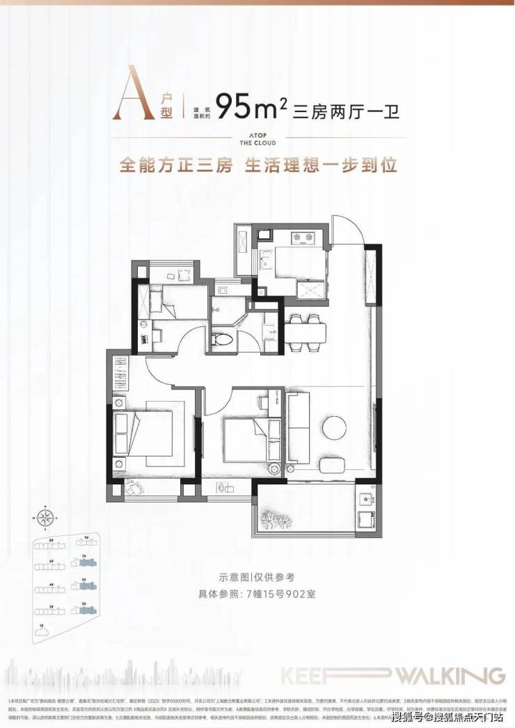 建面约95㎡3房2厅1卫▼