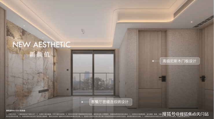 项目大量使用奢石设计,客厅四边弧形天花、主卧树叶拼花地板、精致优雅的骨骼线设计,都是开发商花费更大成本和耗材去呈现更美的视觉体验。