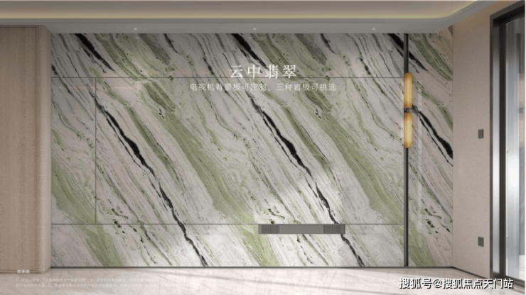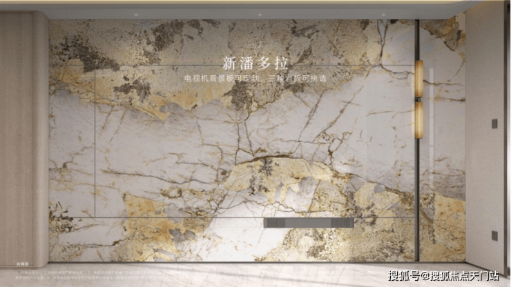 充分考虑业主的个性化需求,在电视背景板提供了新潘多拉、云中翡翠、弗朗明戈金三种结晶釉面岩板选择,成本更高,施工难度也更大。