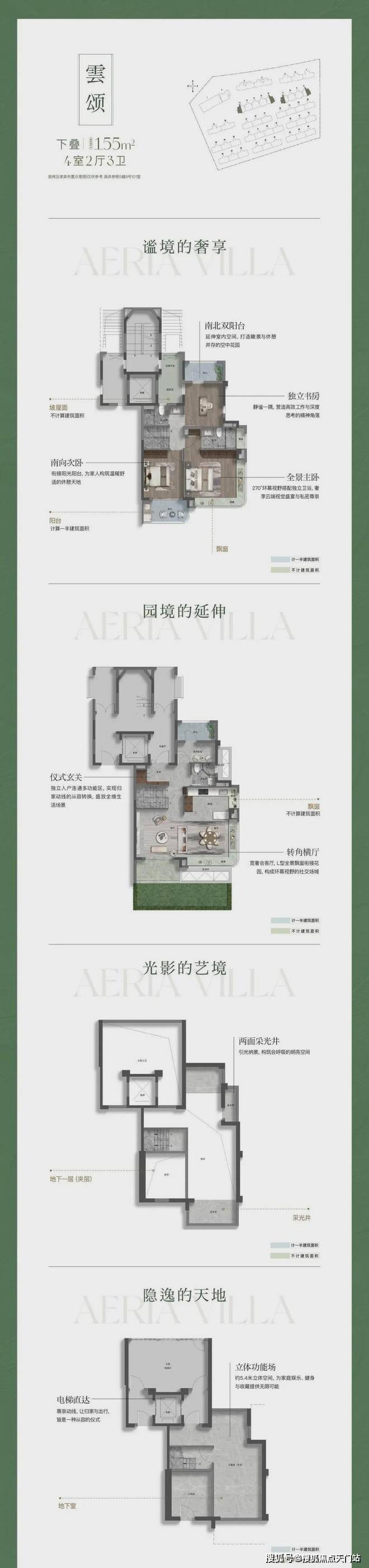 高附赠空间,实得率惊人 :延续联发一贯的产品力优势,本次叠墅产品通过挑空、露台、飘窗、地下室等多维空间设计,实现超高附赠率。以建面约182㎡下叠为例,实际可使用面积可达约292㎡,实得率高达约161%;建面约168㎡三面宽上叠,实得率亦超139%。每一寸空间皆物超所值。