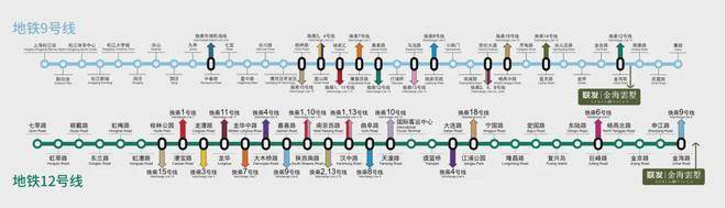 双地铁极速轨交网络:直线距离金海站约600米,9号线(1站金桥、7站世纪大道、9站换乘至陆家嘴);12号线(“换乘之王”,接驳13条地铁纵横全沪)。