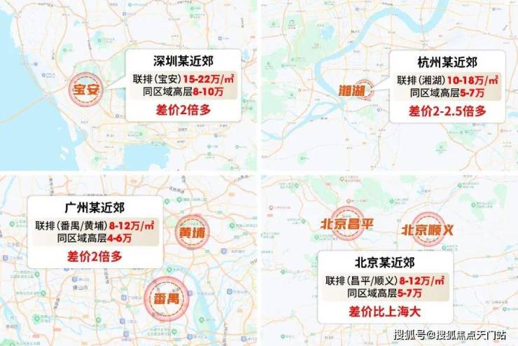 比如,上海近郊联排单价普遍在7-9万/㎡,总价900-1500万;而周边高层/洋房约4.5-5.5万/㎡,联排与高层比值仅为1.6-1.7倍。