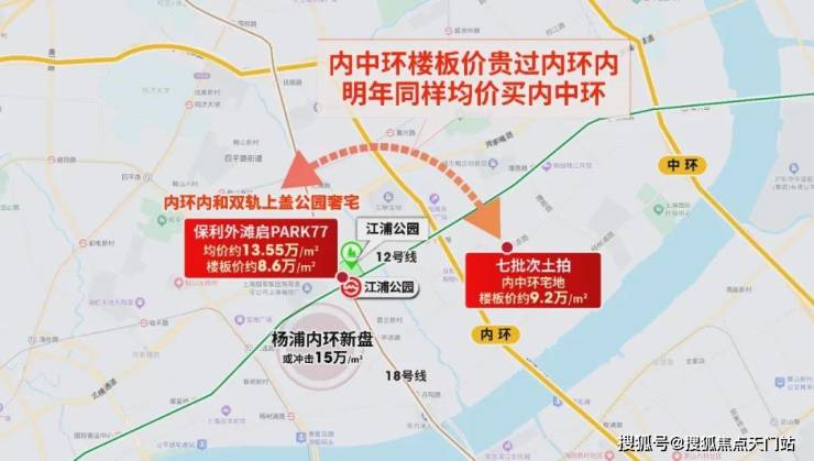 杨浦内环12/18号线江浦公园站双轨上盖,保利外滩启PARK77火热在售中!总价1200万起!