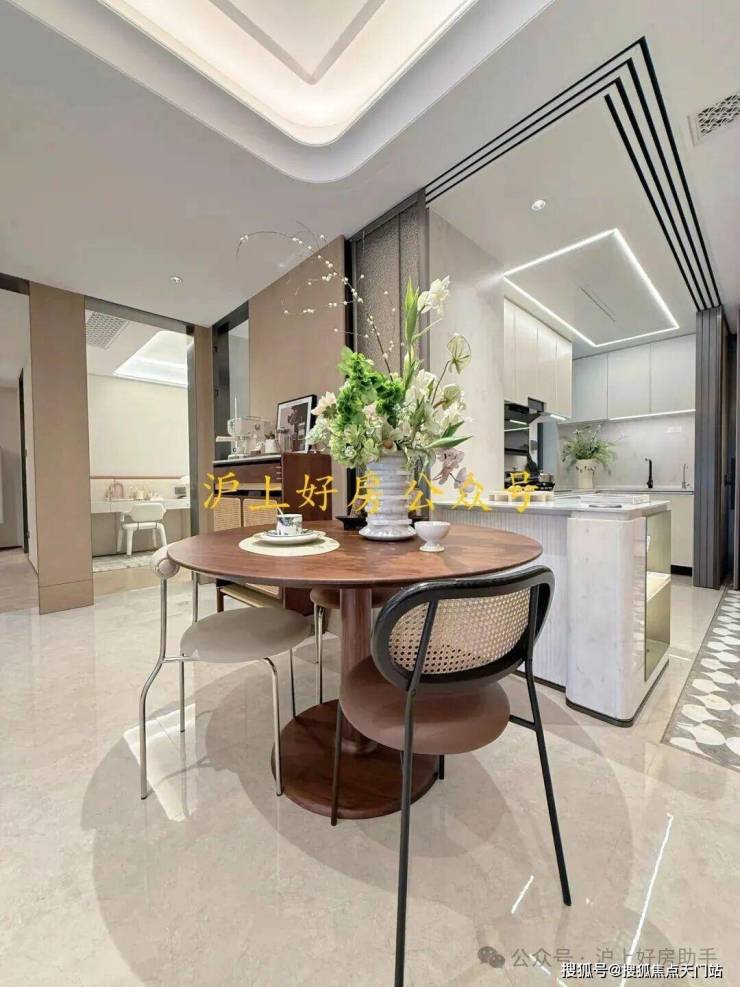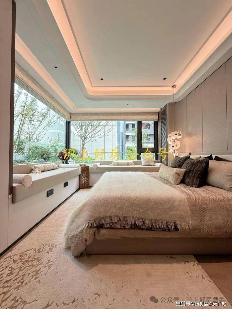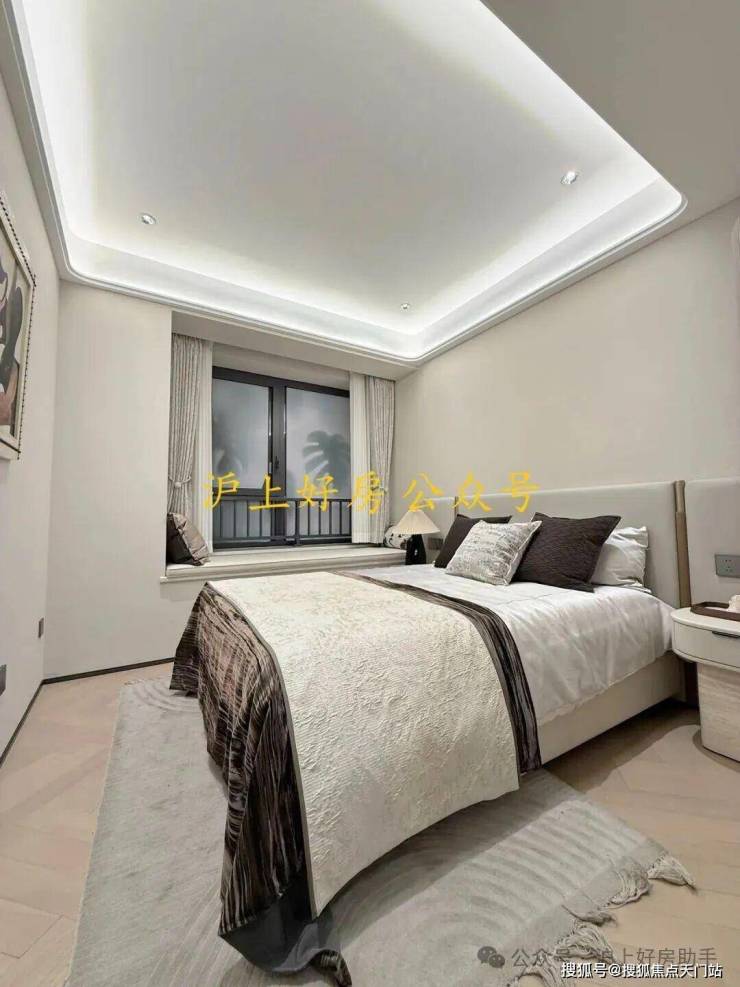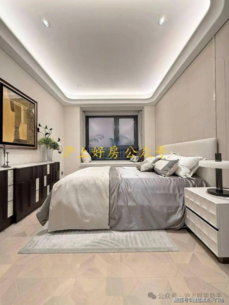 电视背景墙采用卡慕白的石材+皮革造型,弧形吊顶,相当讲究,连空调出风口的形状都打造为海上·清和玺logo山茶花的形状~~三大件为大金(或同等档次)中央空调和地暖,新风系统为百朗(或同等档次),南向阔景阳台,采光视野一级棒!