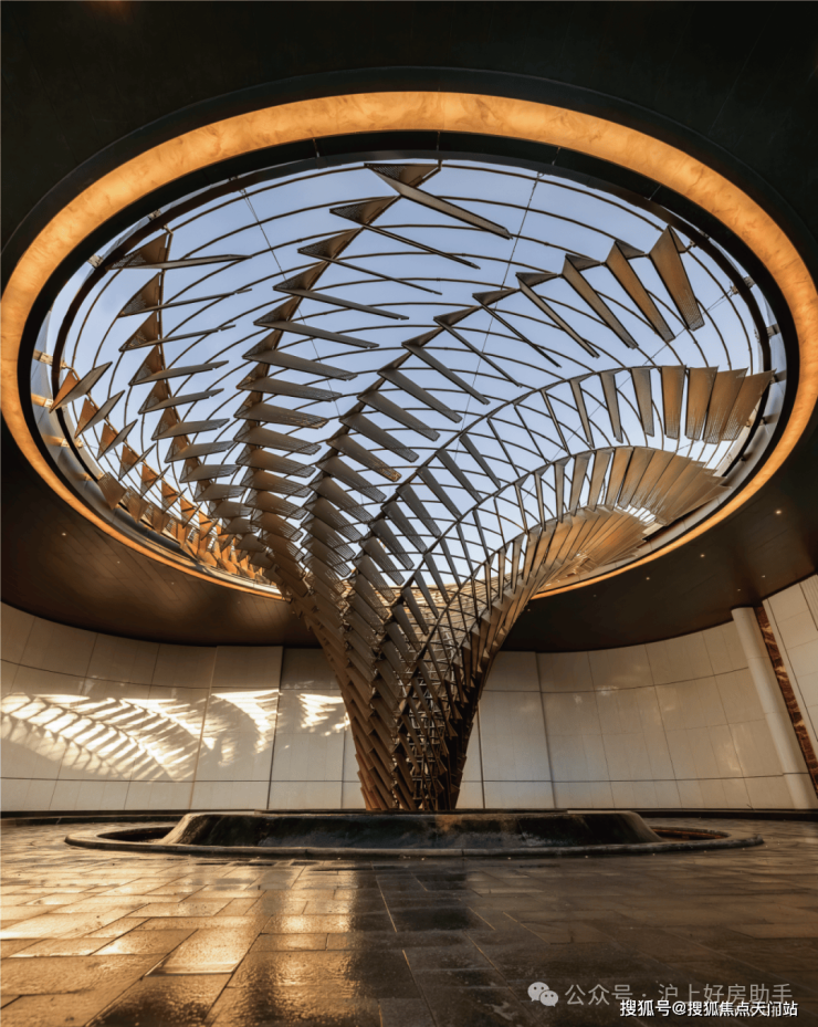 海派漩心的顶部,是由室内灯光设计大师“关永权团队倾力设计打造,柔和的光景效果及恰到好处的色温处理,让整个空间营造出奢华优雅的美妙质感,通过环形透光设计,在穹顶形成独一份的贵雅感受。漫步灯光之下,如同走过时间的美妙殿堂。