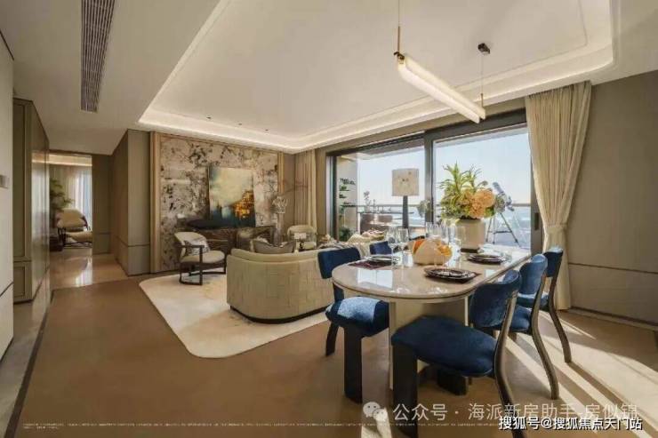 正三面宽朝南格局,搭配观景阳台与全明飘窗,既最大化延伸实用空间,更拓宽观景视野;客餐厅一体化连贯布局,餐桌周边形成流畅洄游动线,告别冗余走道设计,每一寸空间都物尽其用;