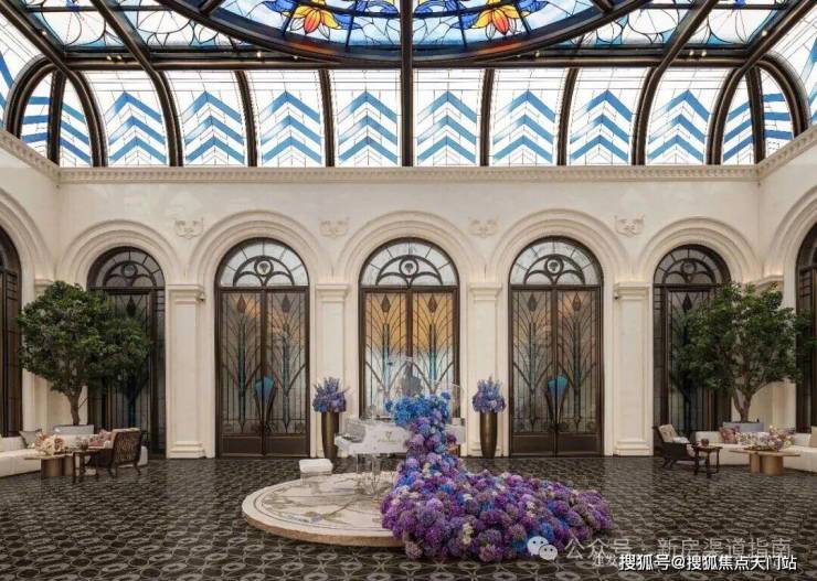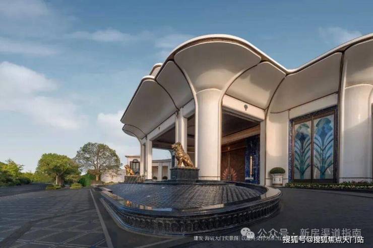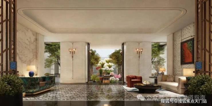 以玉兰门庭—迎归大堂—莳花荟为主轴,敬献步履生辉的归家艺旅:玉兰门庭如繁花盛绽,尊华瑞鳞水景聚运生财,双尊铜狮镇守家宅;迎归大堂流转光影艺韵,百羽栖澜艺术雕塑、芦海宸韵非遗绣作流淌摩登气韵;莳花荟中央会客厅移步异景,献映会客、休闲等雅会。