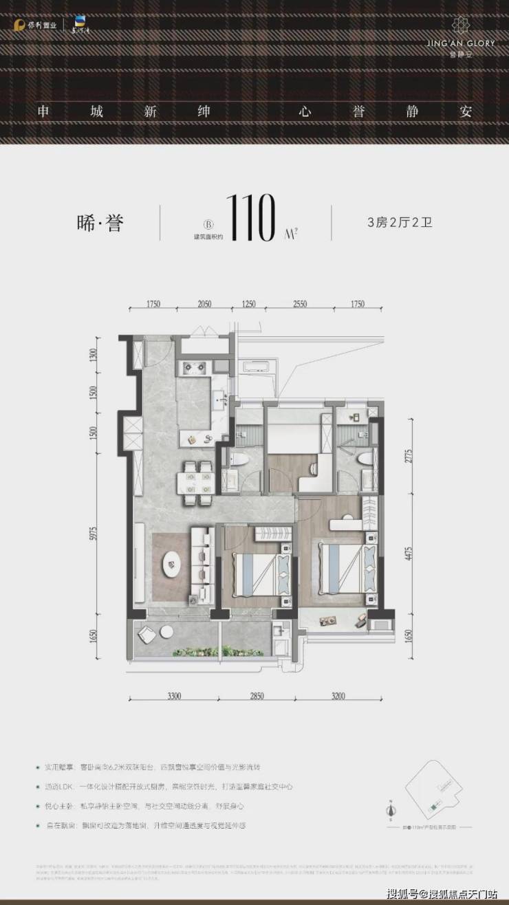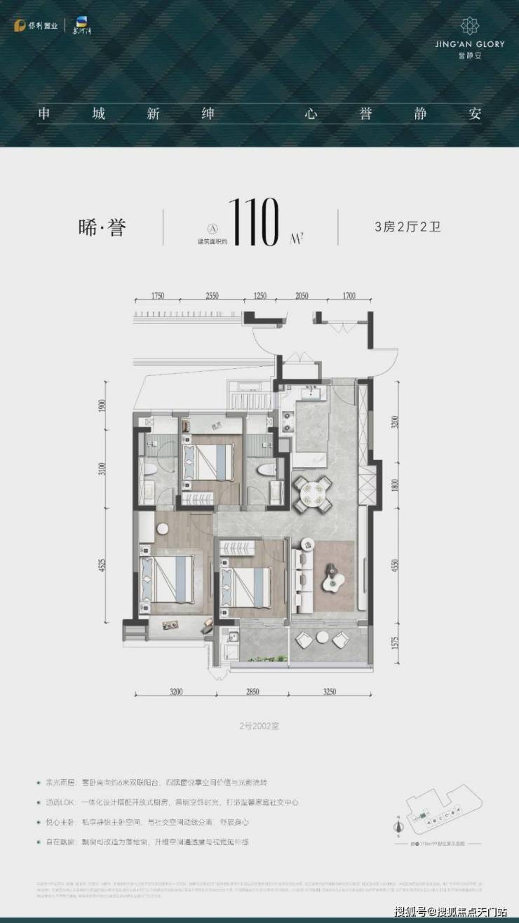 洄游式270°采光大横厅亮点满满 ,北向飘窗可升级为全落地窗,搭配东面270° 景观阳台,形成环幕通透格局,将苏州河景与社区绿意尽收眼底,这一“端厅式设计”在约143 ㎡面积段实属罕见; 三卧室朝南的“平权采光” 设计,则精准匹配了二胎或三代同堂家庭需求。