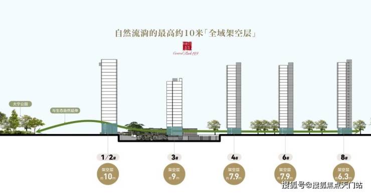 大胆创新最高约10米的全域架空层设计,将整个社区生活平面整体托举,打造出一座 悬浮于空中的花园平台。