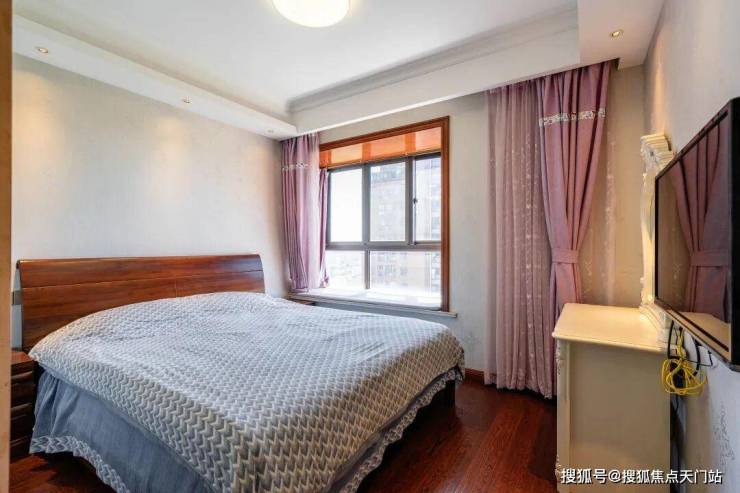卧室暖光轻柔,紫帘半掩,窗外光影流转。躺床上,看会儿墙上电视,疲惫在静谧氛围里消散,安心感十足。