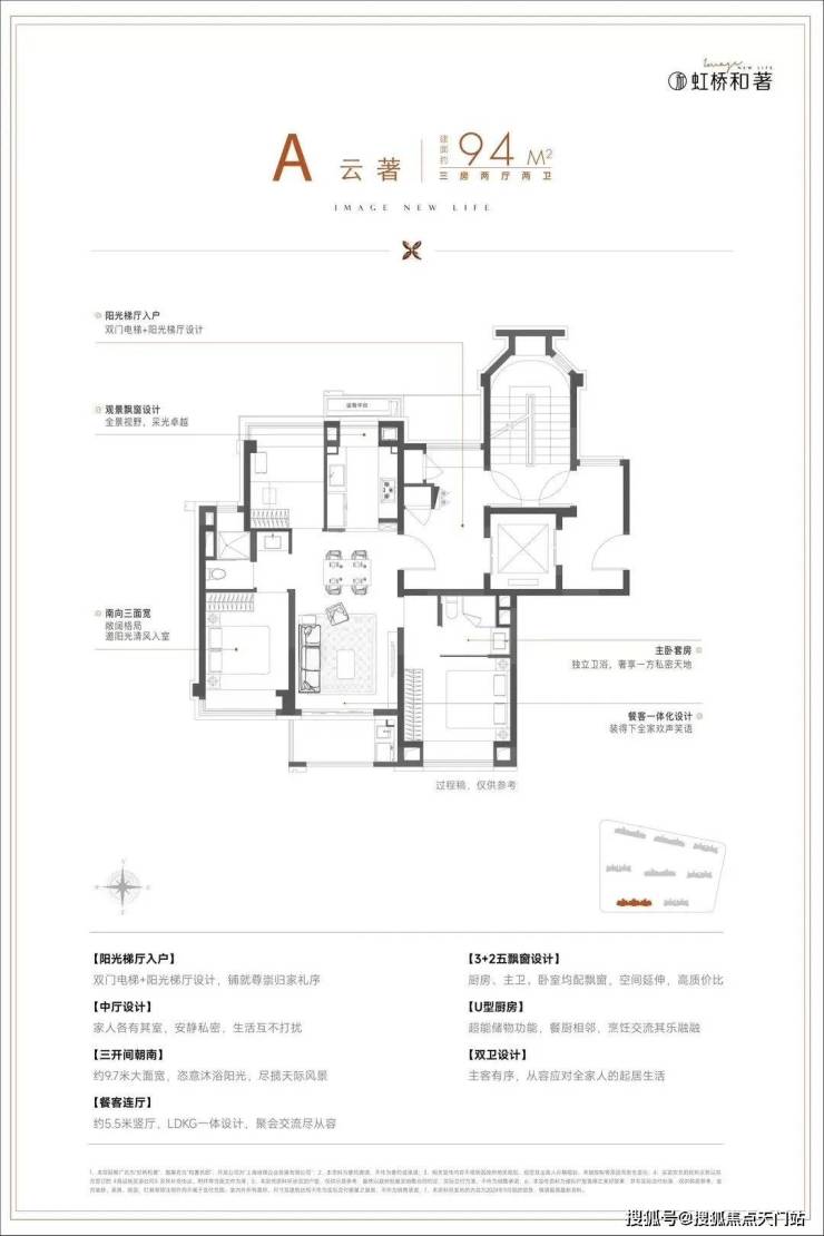 1)建面约94㎡3房