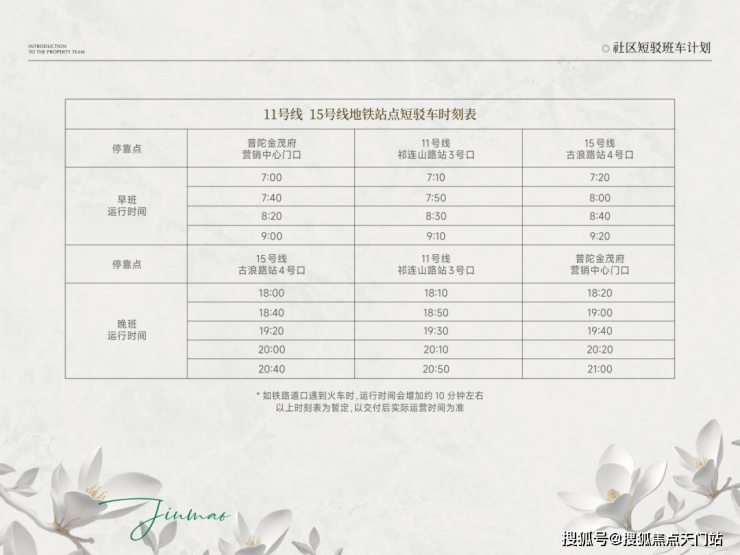 通勤痛点秒解:工作日高峰开通高频次“金茂专线”(10分钟/班),点对点接驳11号线祁连山路站及15号线古浪路站,高效通勤即刻兑现。