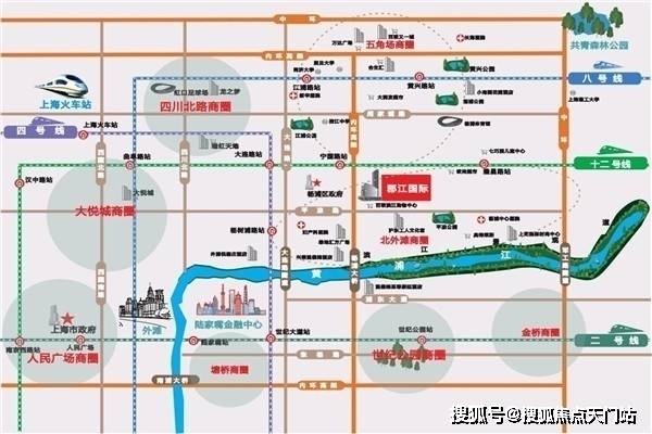 大连路隧道、中环翔殷路隧道。自驾内环高架500米到达,浦东陆家嘴CBD-6.8公里。距上海浦东国际机场虹桥机场39公里。(百度地图)