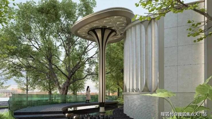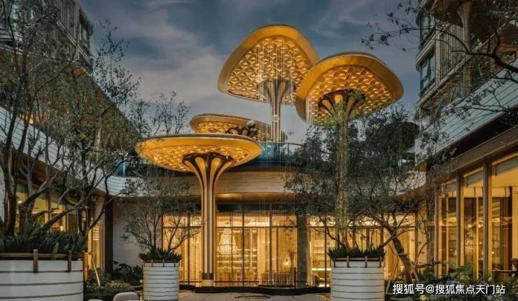 以雅艺柔美的对称主义构筑社区入口大门,从森林中获取灵感,宏观提取叶脉形态,呈现犹如自然中的脉络与流动;同时深入微观的细胞视角,复刻植物的几何纹理与结构逻辑,以自然的秩序与美学塑造 “ 花瓣状的母题造型” 。