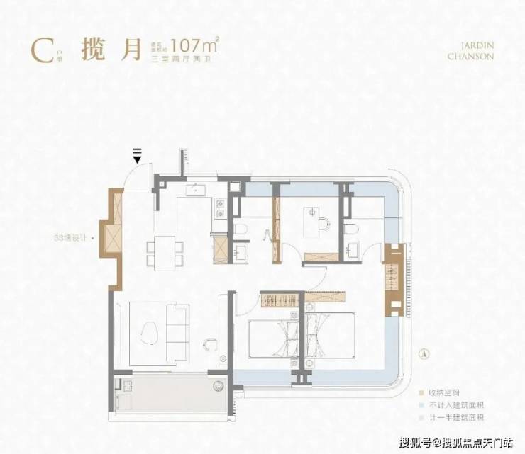 不夸张的讲,这个 建面约107㎡刷新了我对百平三房的新认知, 据悉该户型或将申请专利,我认为实至名归!