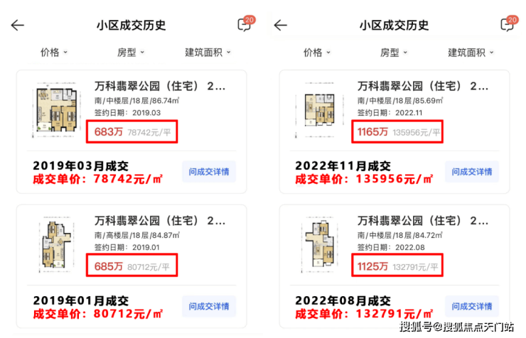 以张江万科翡翠公园为例,2019年二手房成交价为7.87-8.07万/㎡,2022年最新成交价已经涨至13.27-13.59万/㎡!