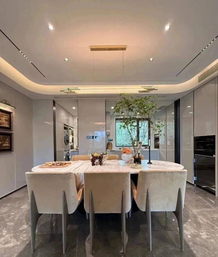 比如,厨房配了珍珠白吊柜、三组抽屉式拉篮合理搭配,调料架收纳、大容量踢脚抽、清洁用品收纳区,米面粮油、碗碟刀叉都可完美隐身。
