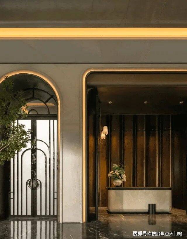 门厅 , 作为建筑空间的第一重呼吸,在摩登且包容的主基调上,汲取 西方古典园林的轴线秩序感, 同时在细节处融入了东方留白的智慧,并以黄金比例分割的线条韵律与考究材质的肌理对话,让这个过渡空间成为兼具当代美学精神与人文温度的仪式场域,让居者于此处完成从外部世界到内心居所的优雅转译。