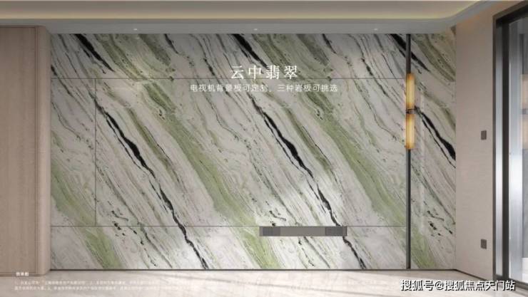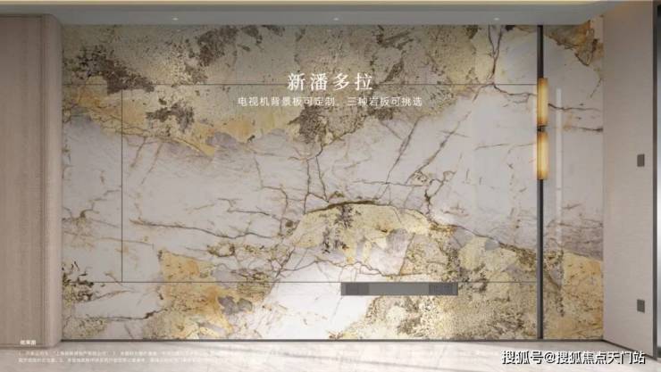 充分考虑业主的个性化需求,在电视背景板提供了 新潘多拉、云中翡翠、弗朗明戈金三种结晶釉面岩板选择,成本更高,施工难度也更大。