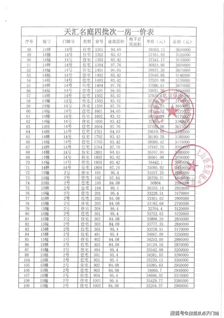 上期一房一价表发布: