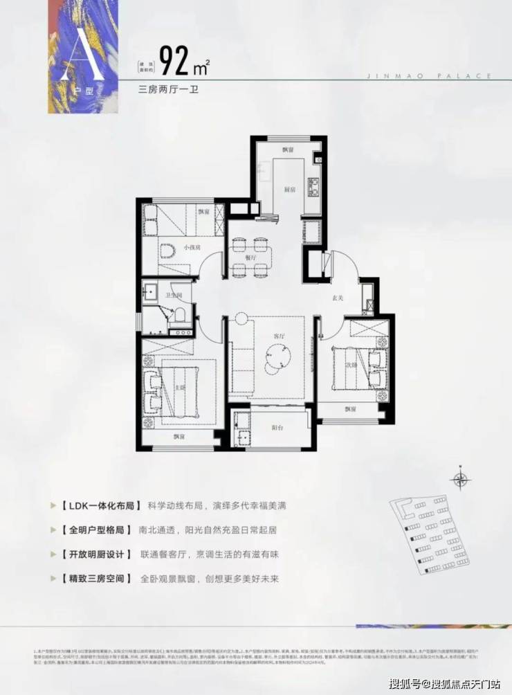 建面约92㎡3房2厅2卫