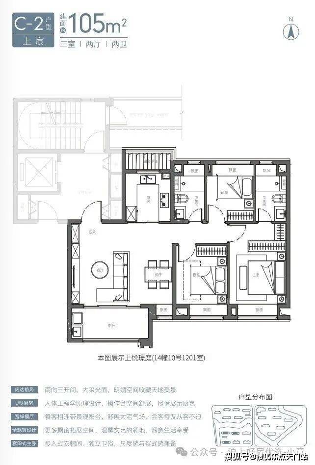 建面约105㎡3房2卫有两种风格(宽厅、竖厅),尤其是宽厅户型,设计格外惊艳。