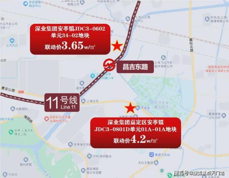 2022年6月2日,深业集团所属深业华东公司成功竞得上海嘉定区安亭镇JDC3-0602单元34-02地块,地块出让面积43128.5㎡,容积率2,成交楼板价19009元/㎡,溢价率8.63%,房地联动价36500元/㎡。