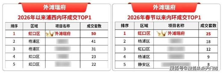 截至上周五,外滩瑞府已稳居 春节后上海内环内销量TOP1