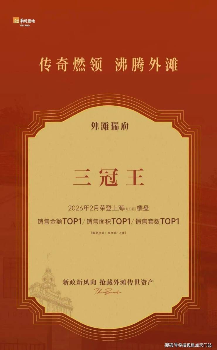 这是项目官方发布的海报,外滩瑞府荣膺 2026年2月虹口区新房三冠王