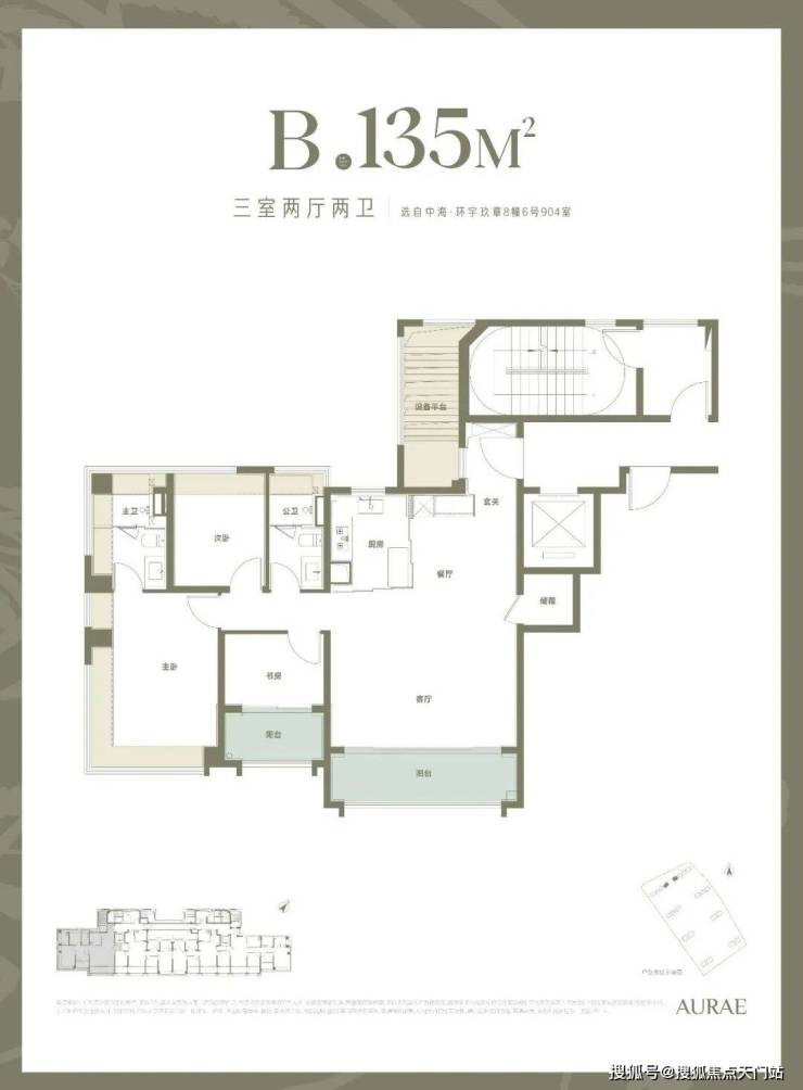 4、【新规后大三房】135平户型,三阳台,全飘窗,实得率约93%。每个卧室空间尺度舒适,这个户型非常适合需求强收纳的粉丝,收纳总量可达32.5平,实现收纳自由;