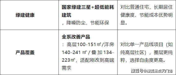 4.产品维度:低密滨河+全系改善,装标、得房率、绿建均超同价位竞品。