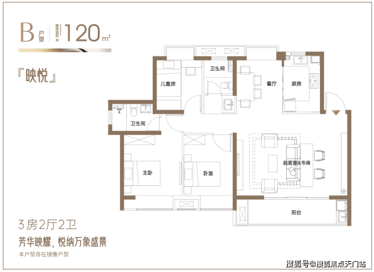 建面约120㎡改善3房:6.3米阔绰横厅