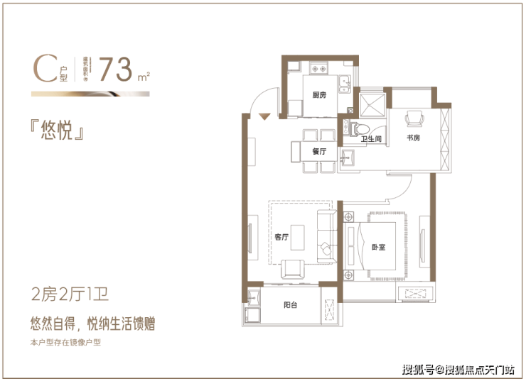 建面约73㎡悠然两房:悦纳生活馈赠